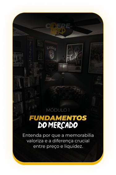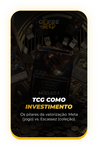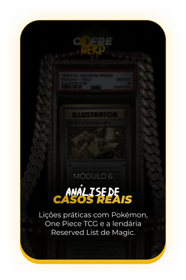O Cofre Nerd não é apenas um curso de "como vender cartinhas". É um método de análise de mercado aplicado ao entretenimento.