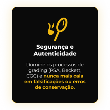 No Módulo 2 e 8, focamos exclusivamente em verificação de autenticidade e empresas de certificação mundial (PSA/JSA), blindando seu capital.